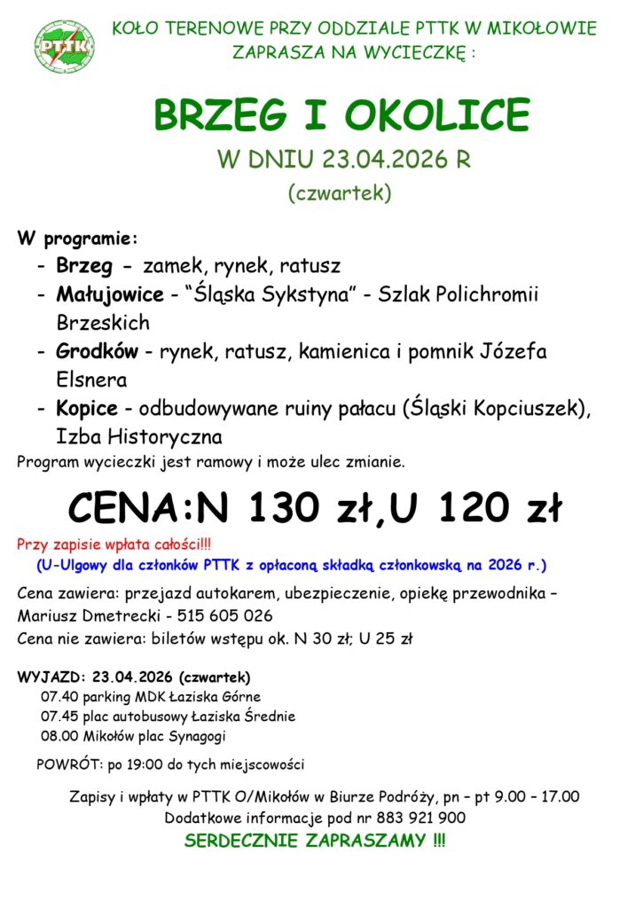 Koło Terenowe zaprasza na wycieczkę do Brzegu